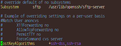 다른 방법으로 서버에 접속을 한 후, /etc/ssh/sshd_config 파일의 맨 끝에 다음을 추가해준다.